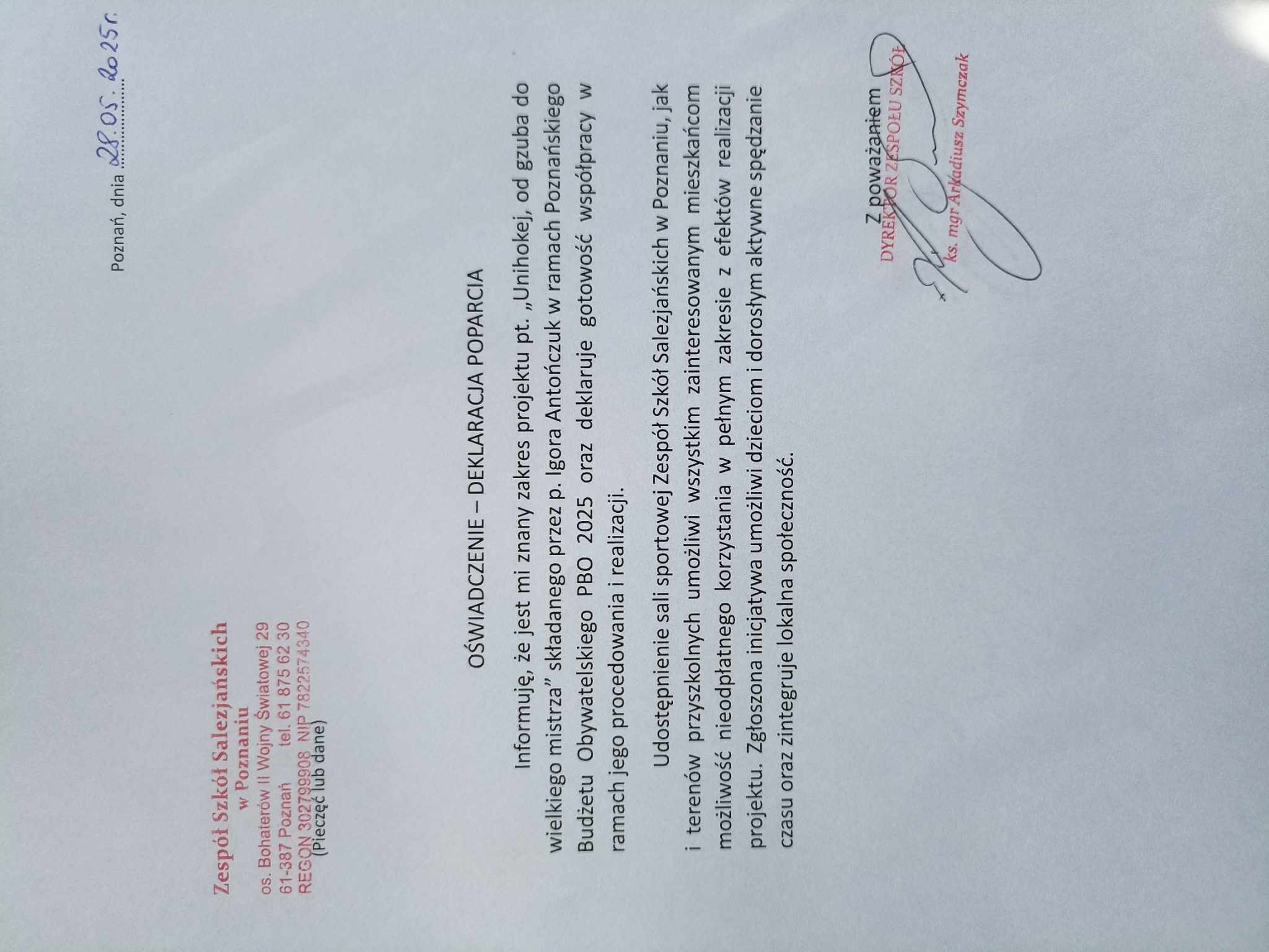 | Oświadczenie dyrektora Zespołu Szkół Salezjańskich w Poznaniu | O_wiadczenie - deklaracja poparcia Unihokej, od gzuba do wielkiego mistrza.jpeg |