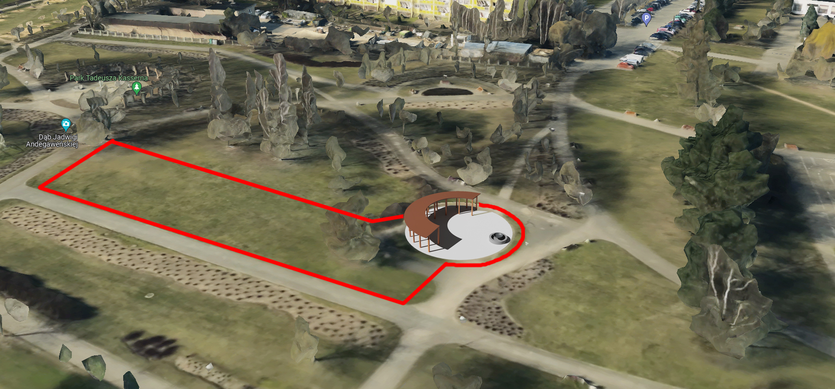 Pas zieleni ciągnący się od okrągłego betonowego placyku do Dębu Jadwigi Andegaweńskiej.Uzasadnienie realizacji projektu