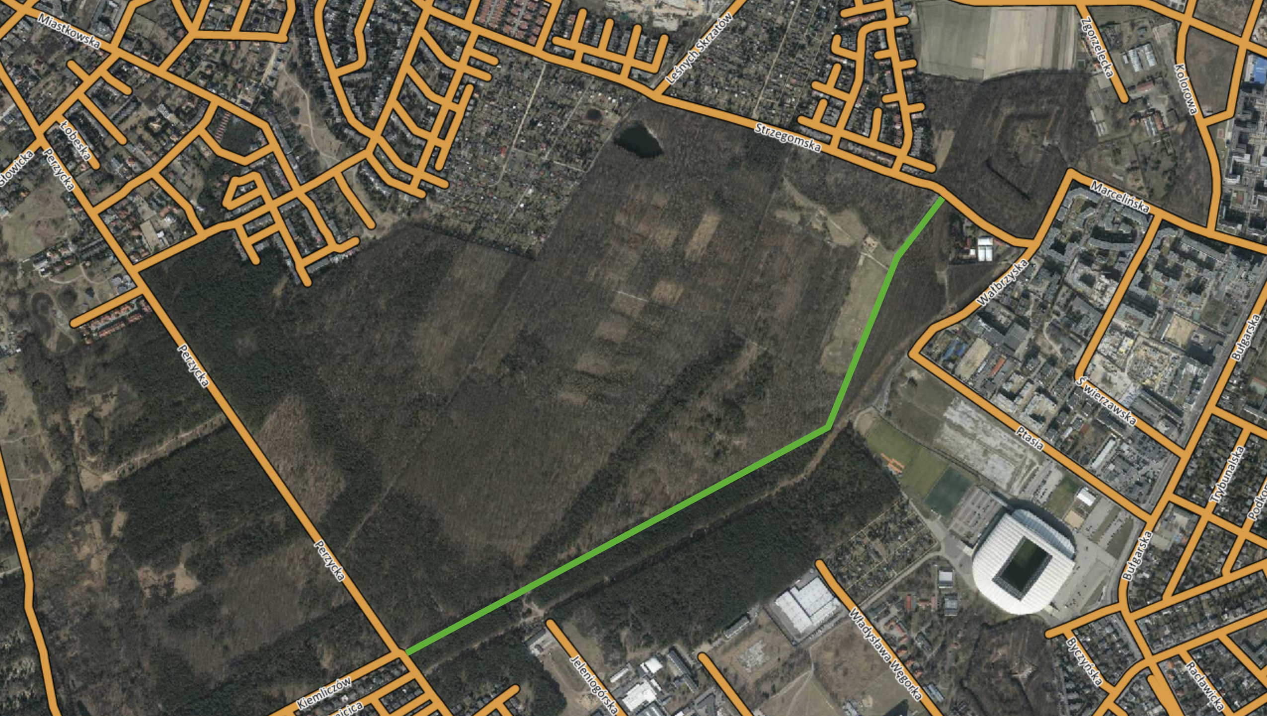 Las Marceliński (odcinek Perzycka-Strzegomska)Inne istotne informacje dotyczące lokalizacji