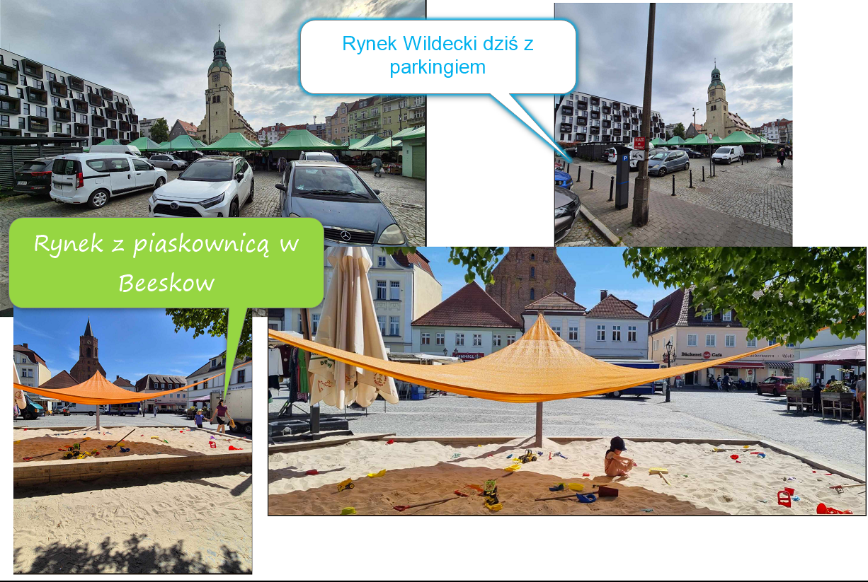 Podobne rozwiązania można spotkać za granicą np. w Niemczach ( w załączniku zdjęcie z rynku w miejscowości Beeskow). Na zdjęciu świetnie widać, jak można pogodzić funkcje targowe z funkcjami rekreacyjnymi.