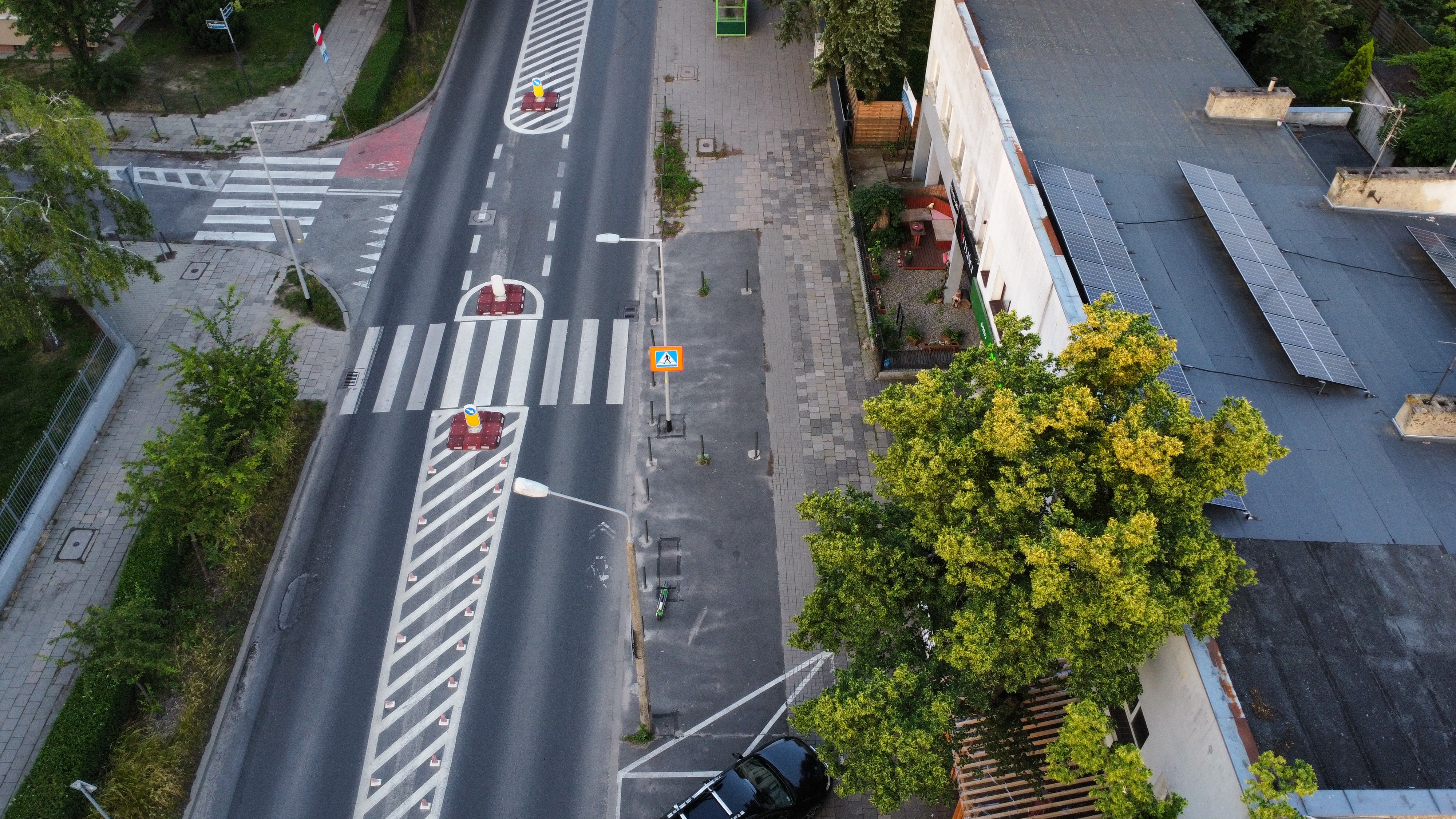 Zabrać beton, oddać teren mieszkańcom! Projekt zakłada wprowadzenie zieleni niskiej, co poprawi retencję wody w okolicy. Dodatkowo stojaki na rowery, aby wizyta w dowolnym lokalu usługowym była jeszcze przyjemniejsza i bardziej przystępna dla każdego! Obszar jest całkiem spory (od przystanku autobusowego, aż do miejsc parkingowych, wraz z zejściem z pasów), dlatego taki mini skwer byłby w tym miejscu idealnym rozwiązaniem dla wszystkich mieszkańców dzielnicy. Dodatkowo w ramach zadania zostanie uzupełniony drzewostan na odcinku od ul. Przybyszewskiego do ul. Grochowskiej.